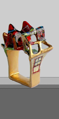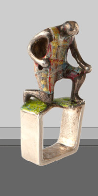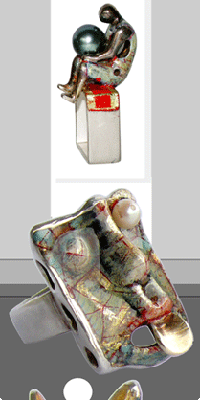 TECHNIQUE : FORMED IN WAX, CASTED IN SILVER , GOLD PLATED, HANDPAINTED , GLAZED WITH SYNTH. RESIN.