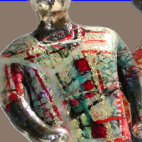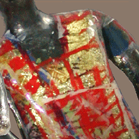 TECHNIK: AUS WACHS MODELLIERT, IN SILBER GEGOSSEN, GOLDBESCHICHTET, HANDBEMALT, KALT GLASIERT