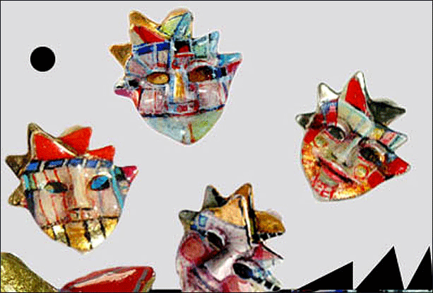 TECHNIK : AUS WACHS MODELLIERT, IN SILBER GEGOSSEN, GOLD BESCHICHTET, HANDBEMALT, KALT GLASIERT.