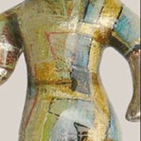 TECHNIK : AUS WACHS MODELLIERT , IN SILBER GEGOSSEN, GOLDBESCHICHTET, HANDBEMALT, KALT GLASIERT. |