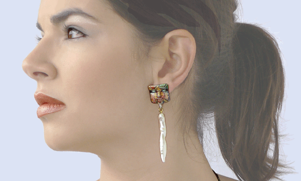 TECHNIK : AUS WACHS MODELLIERT, IN SILBER GEGOSSEN, HANDBEMALT, GLASIERT. SILBERDRAHT GEHÄKELT |
